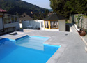 aus Swimmingpool und ökologischem Teich dar. Der Schwimmteich bietet